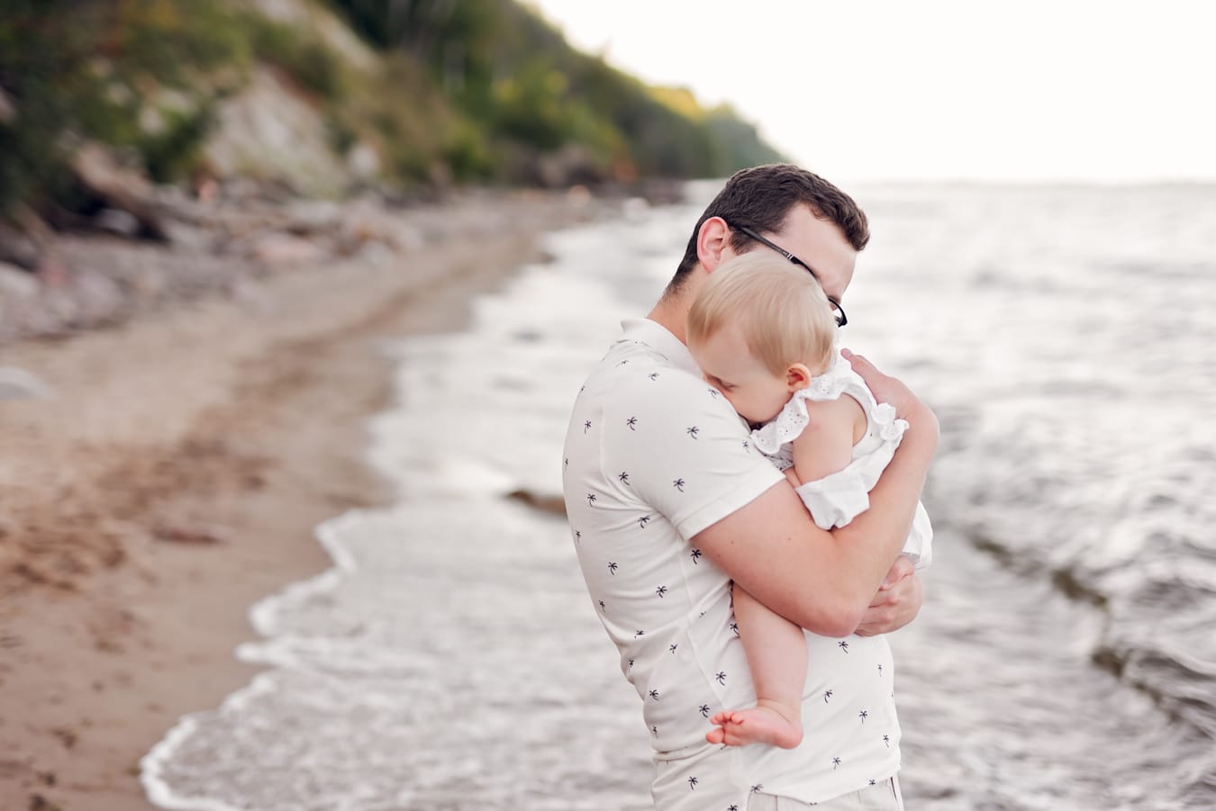 Sesję zaczęliśmy kiedy słońce było jeszcze wysokie, ale dzięki zacienionej plaży światło było miękkie i równomierne. Nie trzeba było czekać na złotą godzinę — cień dał nam idealne warunki wcześniej.