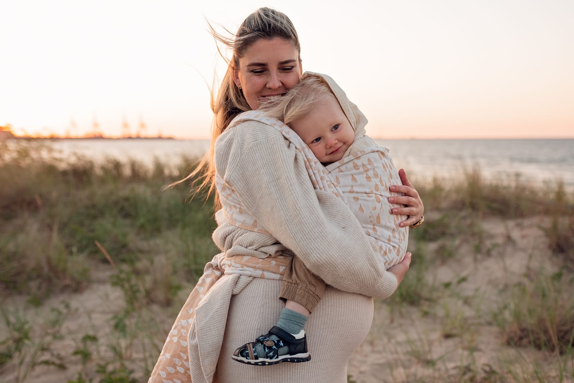 Z mojej strony mogę powiedzieć, że nie polecam zabierania ze sobą wózka czy nosidła na sesję. Wiele osób dziwi mi się, ale mam swoje powody i myślę, że większość fotografów się ze mną zgodzi. Wózka trzeba pilnować – po pierwsze, żeby nie wchodził w kadr, a po drugie, żeby go ktoś nie ukradł 😉 To taki bardzo prozaiczny argument, jest jeszcze drugi, taki który bardziej trafia serce. Zmęczony maluch lepiej by szukał ukojenia w Twoich ramionach, nie w wózku. Gwarantuje, że te kadry chwycą Cię za serce. A może jesteś chustomamą? Jeśli tak cudownie! Każdy fotograf będzie zachwycony takim dodatkiem.