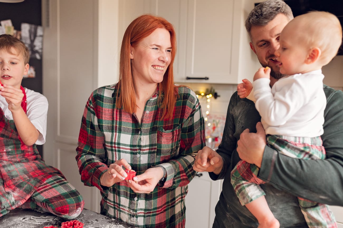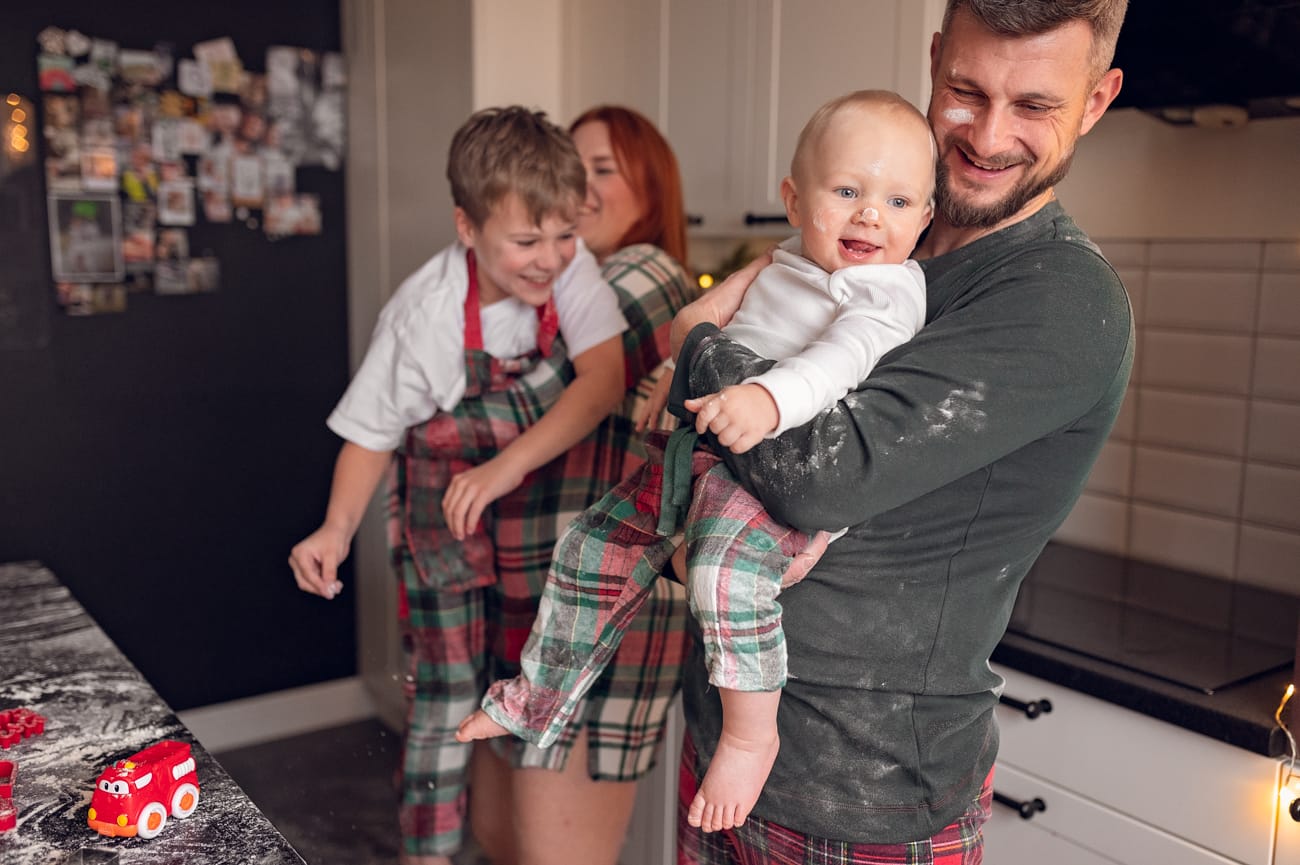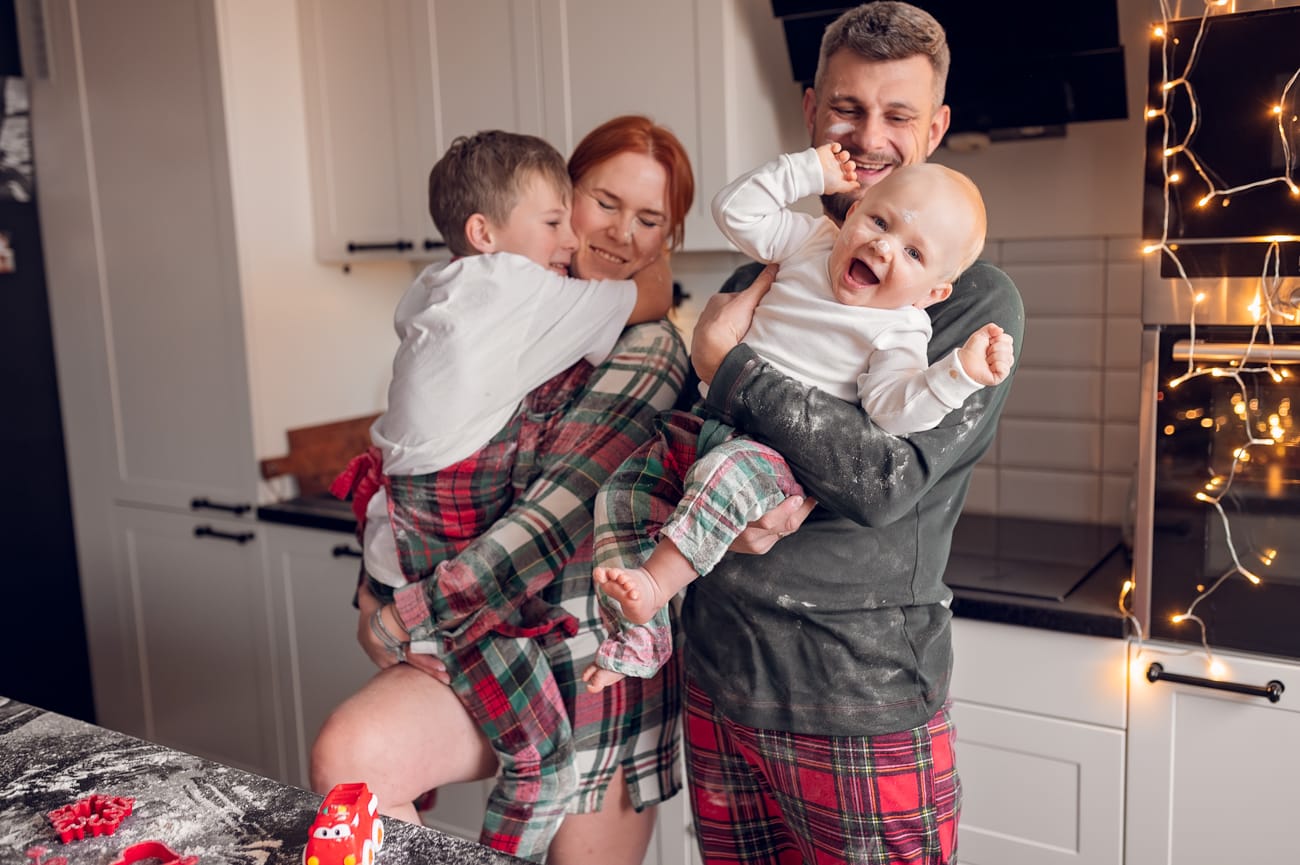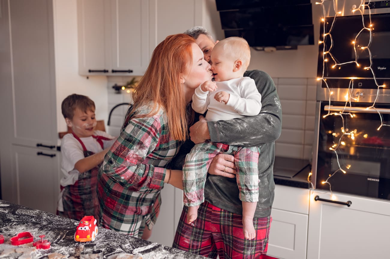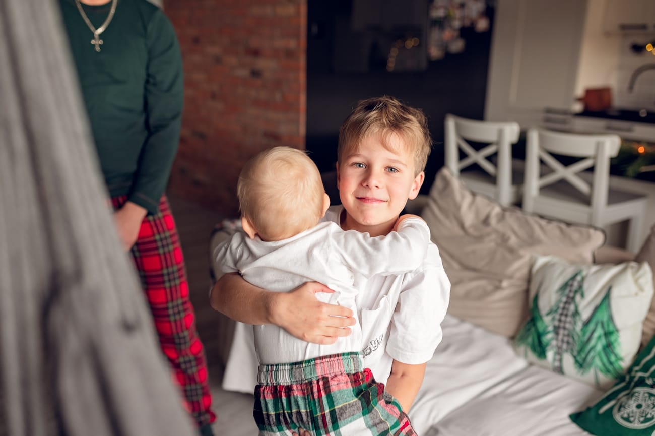 Świąteczna sesja w domu jest cudownym sposobem na wspólne spędzenie czasu i tak właśnie powinna być traktowana. Dlatego też nie ma na niej pośpiechu, stresu oraz nerwów. A w zamian jest dużo radości ze wspólnie spędzonego czasu.