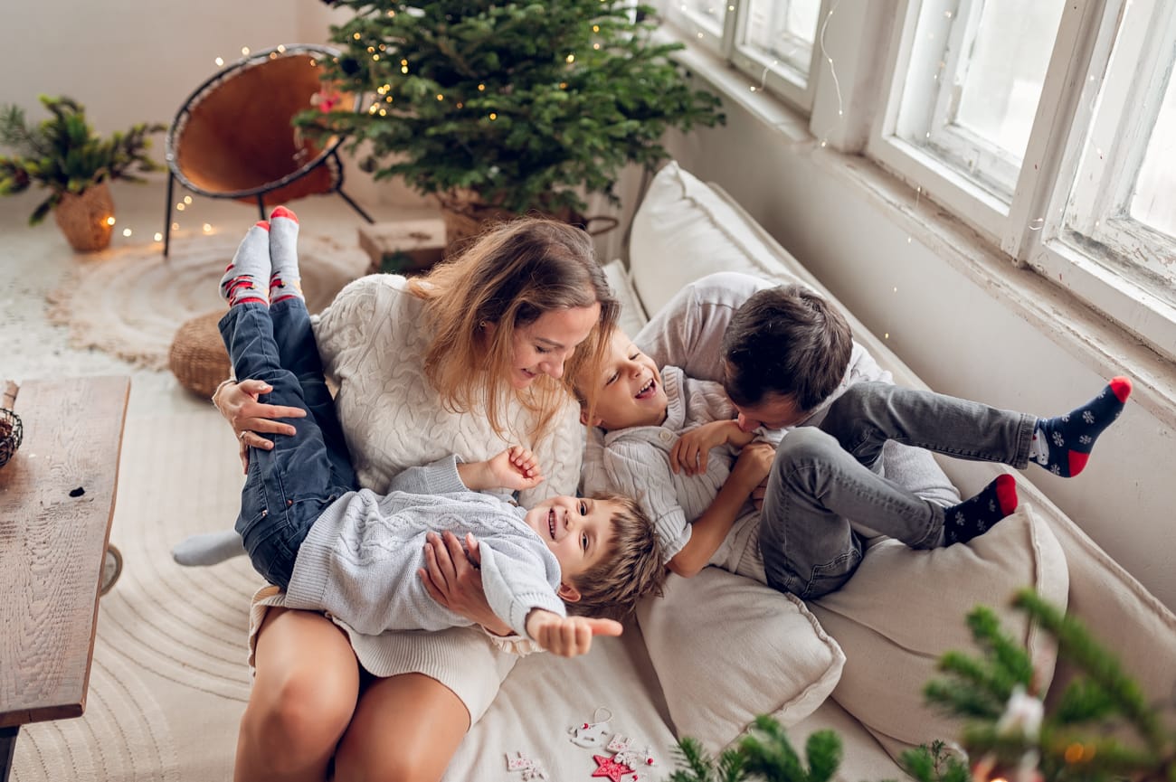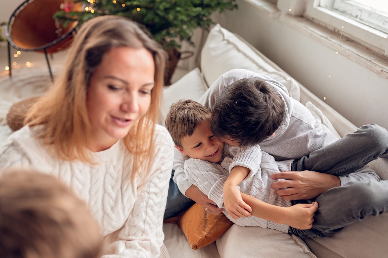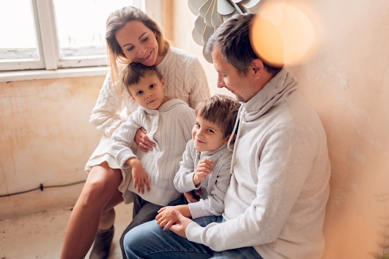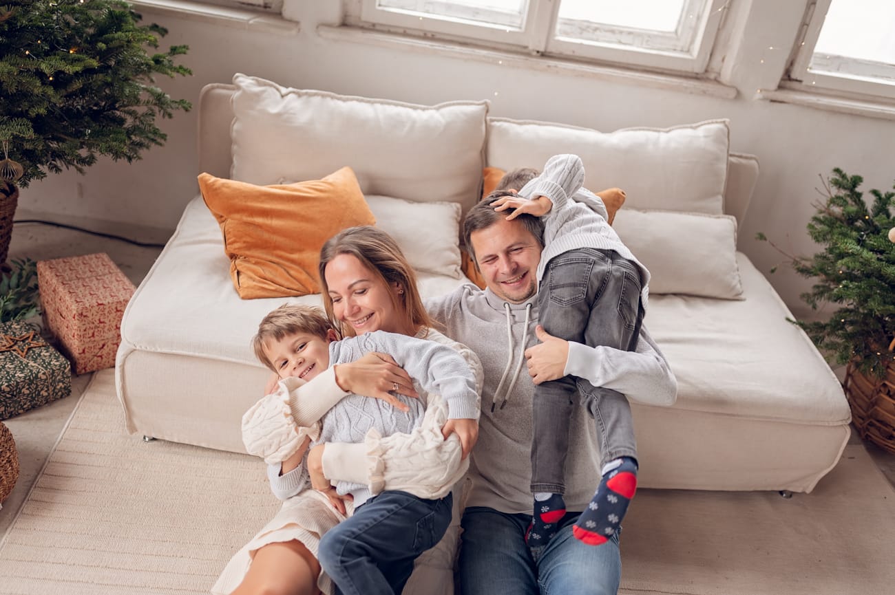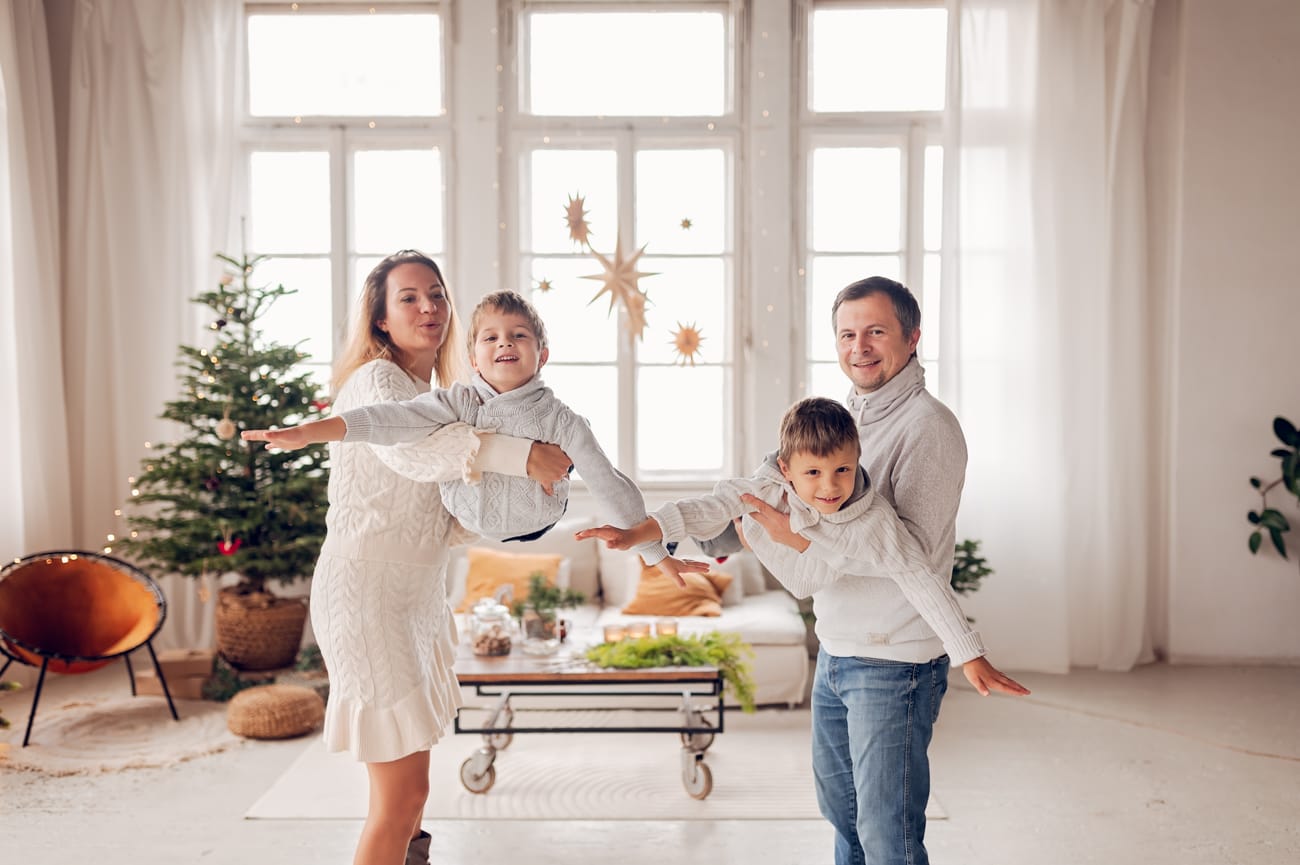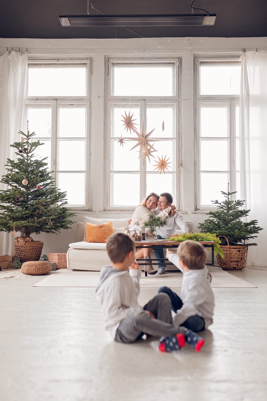 W trakcie sesji w naszym studio skupiamy się na tym, co najważniejsze – na Waszej bliskości i relacjach. Dlatego możecie swobodnie usiąść na wygodnej kanapie, pobawić się z dziećmi, a przestrzeń do szaleństw zapewni mnóstwo radości dla najmłodszych. W tle zamiast sztucznego scenariusza są delikatnie oświetlone drzewka, które nadają świątecznego klimatu bez nadmiernej ingerencji. Dzięki temu zdjęcia są pełne ciepła i autentyczności, a minimalistyczne otoczenie podkreśla to, co najpiękniejsze – Waszą rodzinę.
