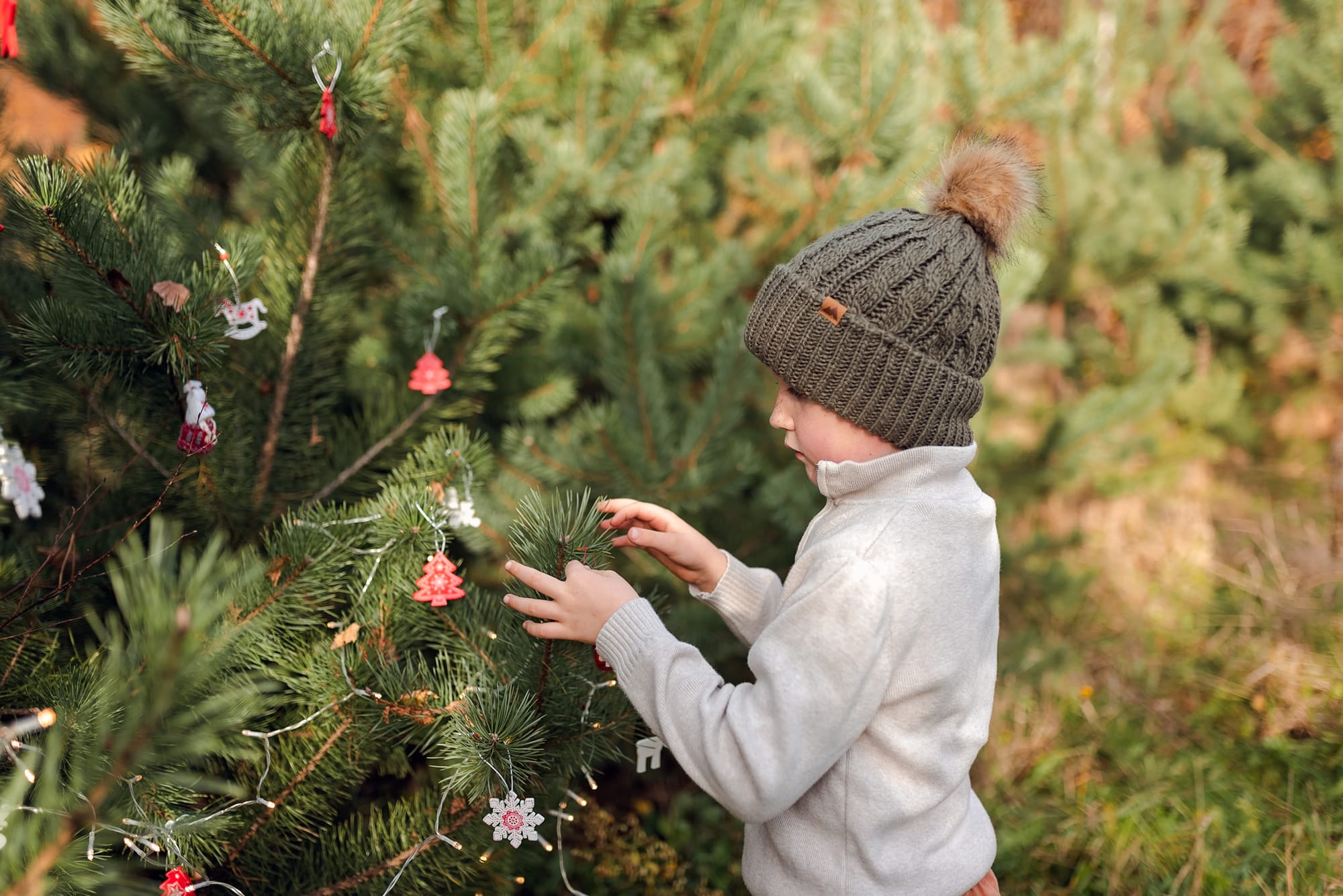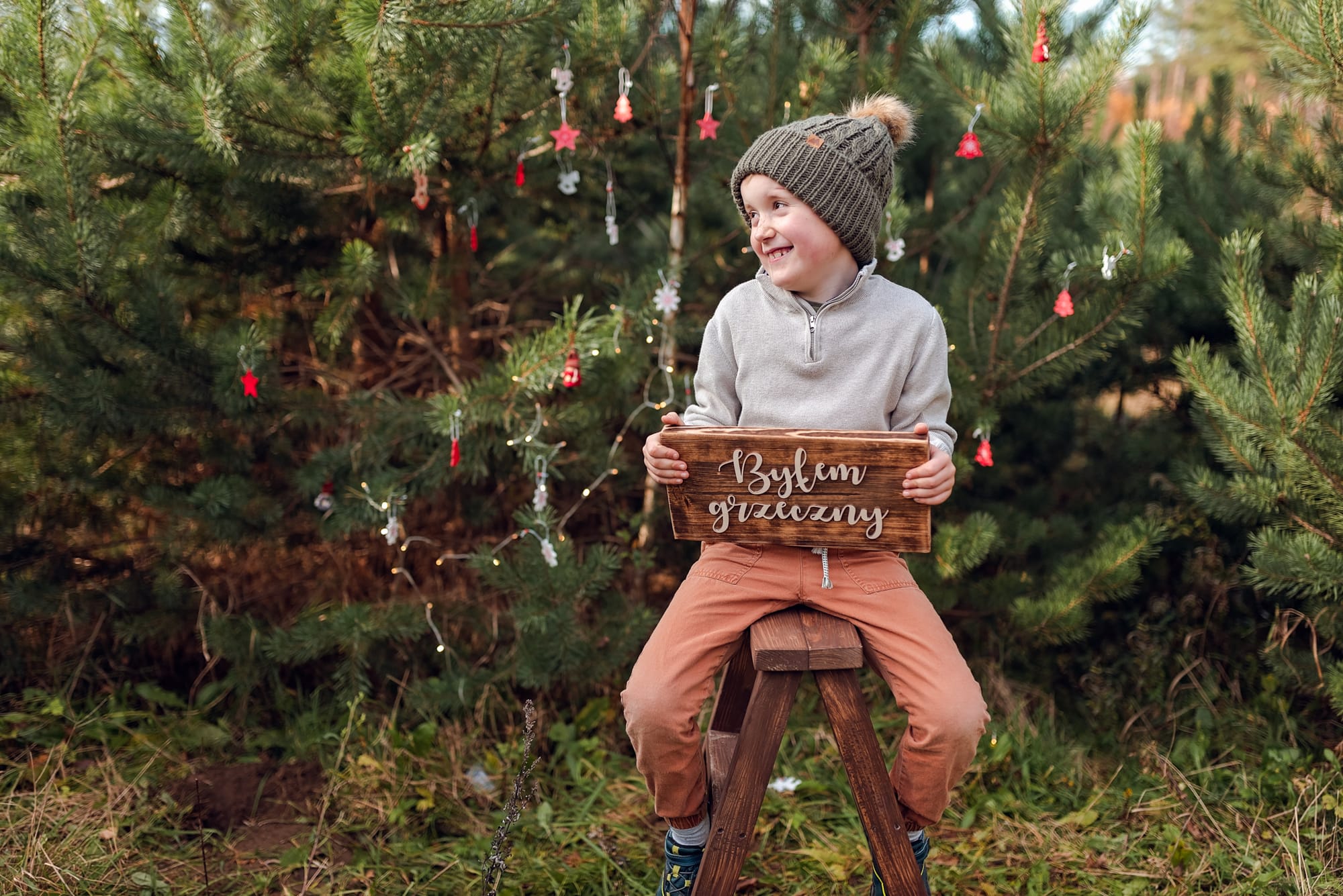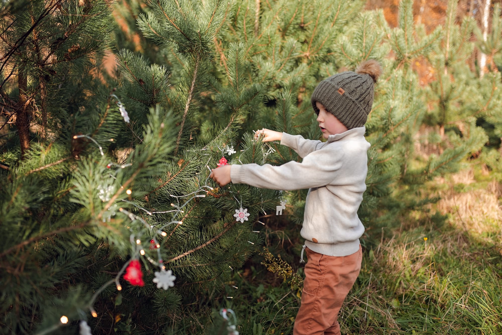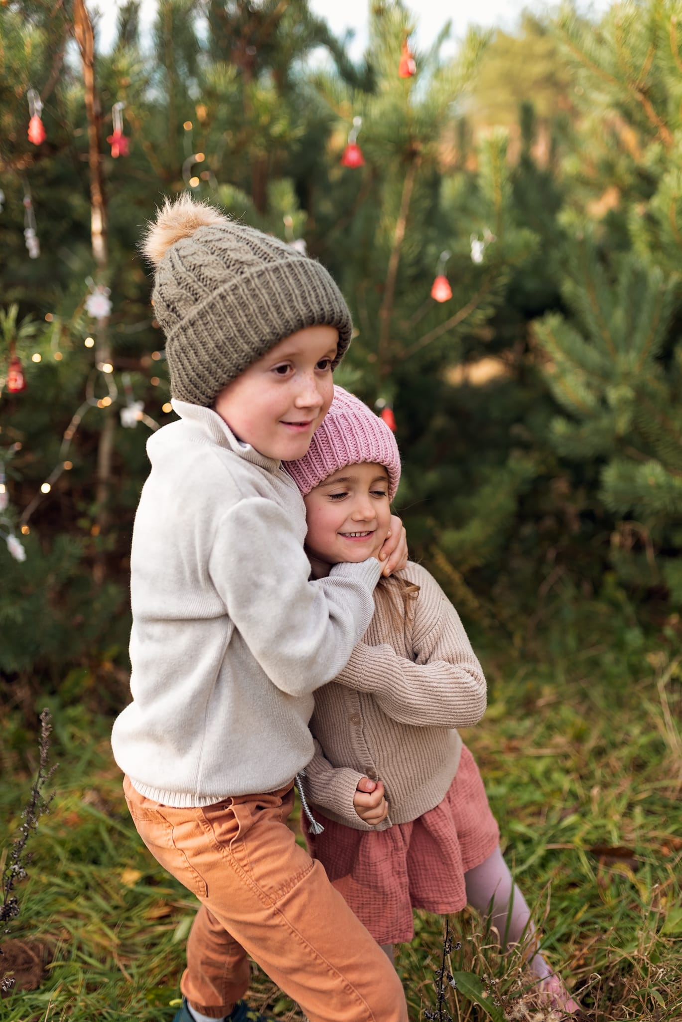 Sesje świąteczne. Takie, na których idziesz z dziećmi do lasu w którym otacza Was zapach sosny. Dzieci podekscytowane biegną szukając tego jednego idealnego drzewka. A potem zaczynacie je przystrajać, wieszacie lampki które migocą między gałązkami. Jest radość, jest wesoło, jest rodzinnie. W międzyczasie się przytulacie i wygłupiacie, a jak zmarzniecie pijecie gorące kakao. Idealne wprowadzenie w ten pełen emocji przedświąteczny okres.