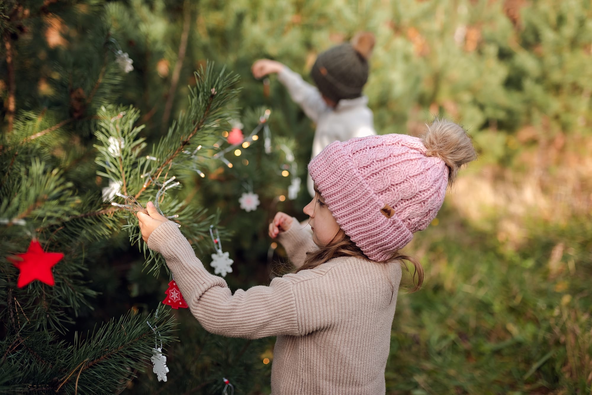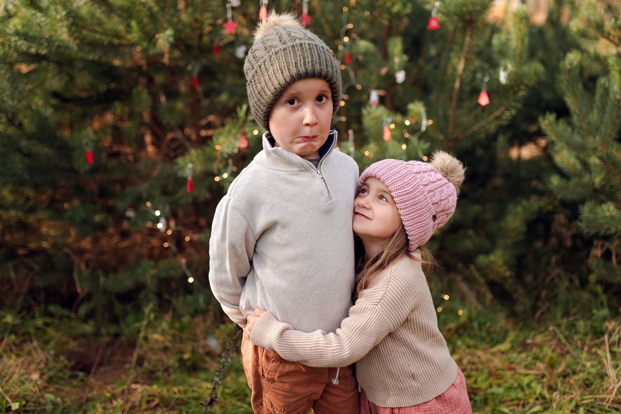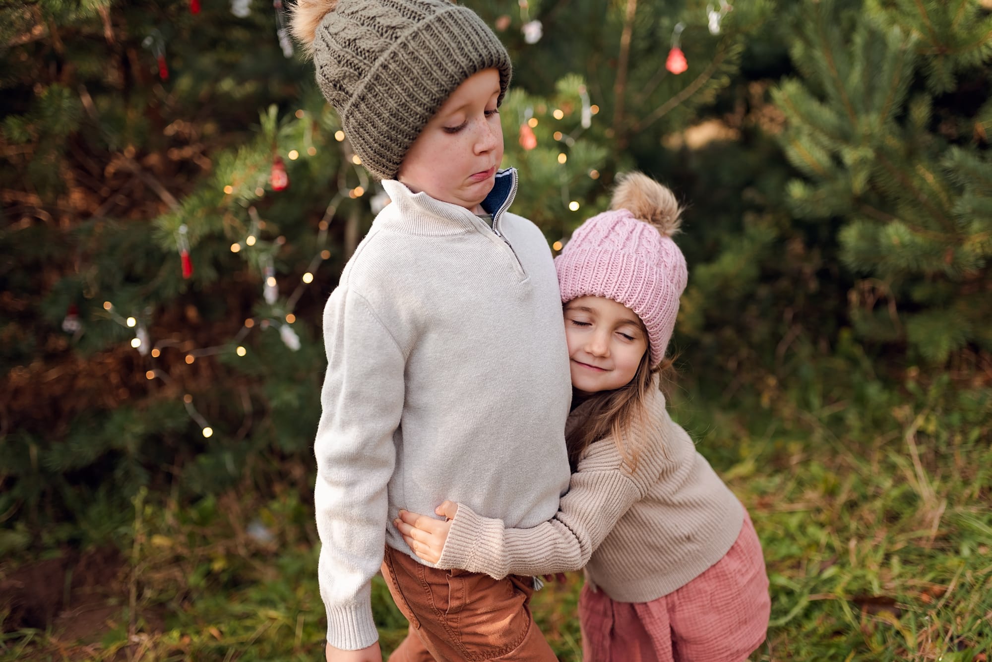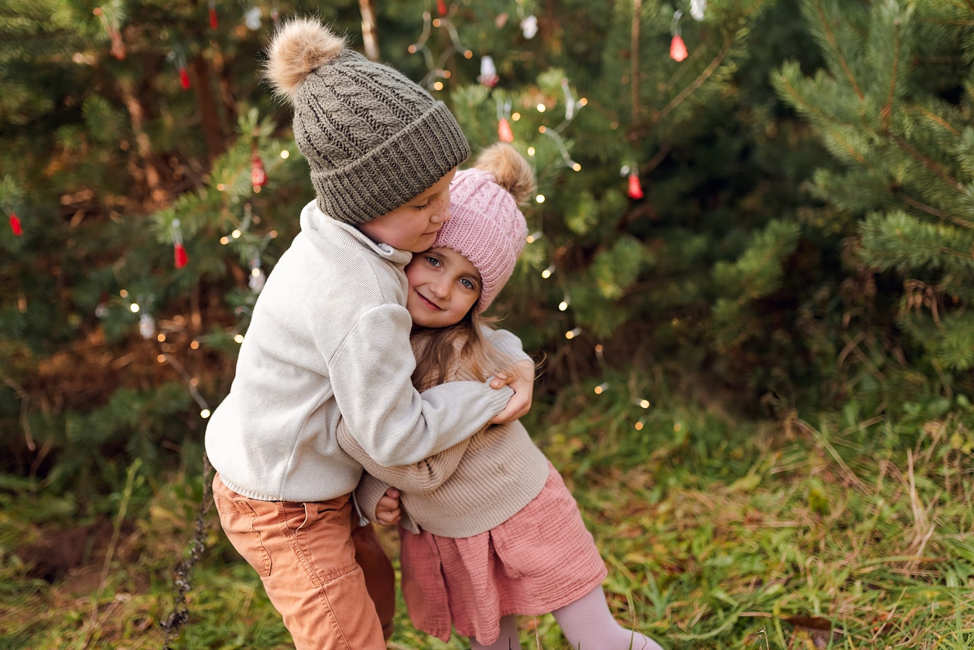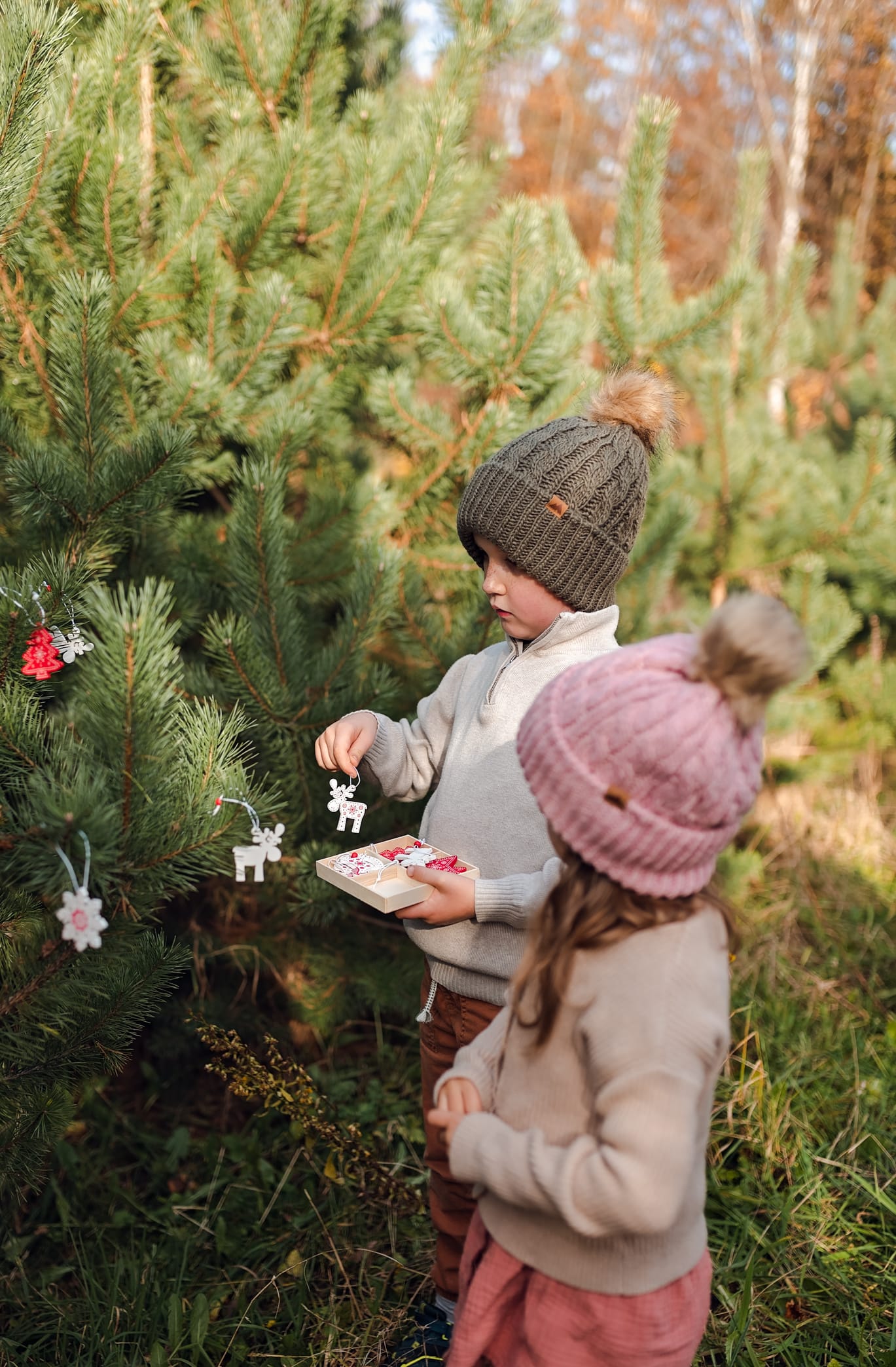 Sesje świąteczne. Takie, na których idziesz z dziećmi do lasu w którym otacza Was zapach sosny. Dzieci podekscytowane biegną szukając tego jednego idealnego drzewka. A potem zaczynacie je przystrajać, wieszacie lampki które migocą między gałązkami. Jest radość, jest wesoło, jest rodzinnie. W międzyczasie się przytulacie i wygłupiacie, a jak zmarzniecie pijecie gorące kakao. Idealne wprowadzenie w ten pełen emocji przedświąteczny okres.